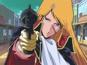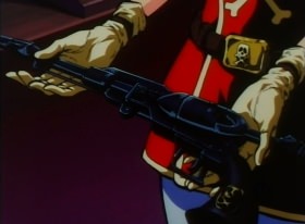 De même, lorsqu'Hiroshi utilisera le Cosmogun d'Emeraldas afin de tuer Gamon, montrant sa détermination à refuser le futur qui