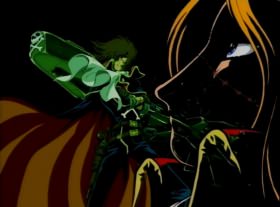 De même, lorsqu'Hiroshi utilisera le Cosmogun d'Emeraldas afin de tuer Gamon, montrant sa détermination à refuser le futur qui
