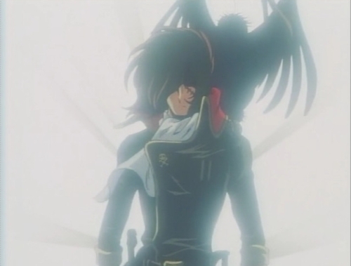l'emblème que seuls elle et Harlock sont en droit de porter, Emeraldas respecte à l'opposé le courage sans borne d'Hiroshi et sa